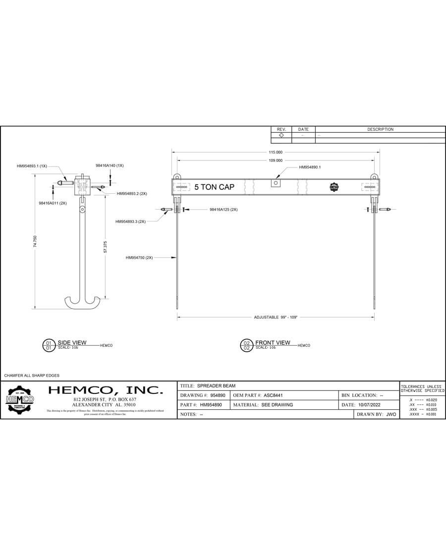 HEMCO All steel spreader beam